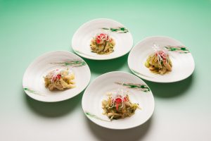 - ②に粉類、メレンゲの半量加え、ゴムベラで切るようにさっくりと混ぜ、残りのメレンゲを全部入れ同じように混ぜ合わせる。