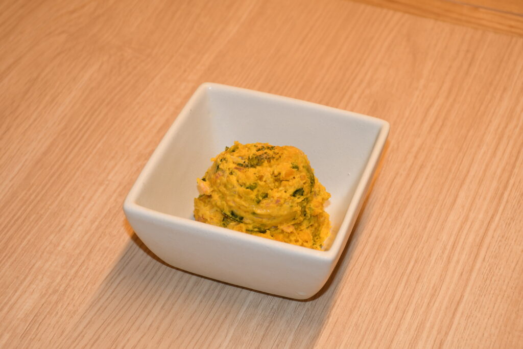 かぼちゃを潰す&角切りで使うのでしっかりと食感や甘みを感じられる一品です!
